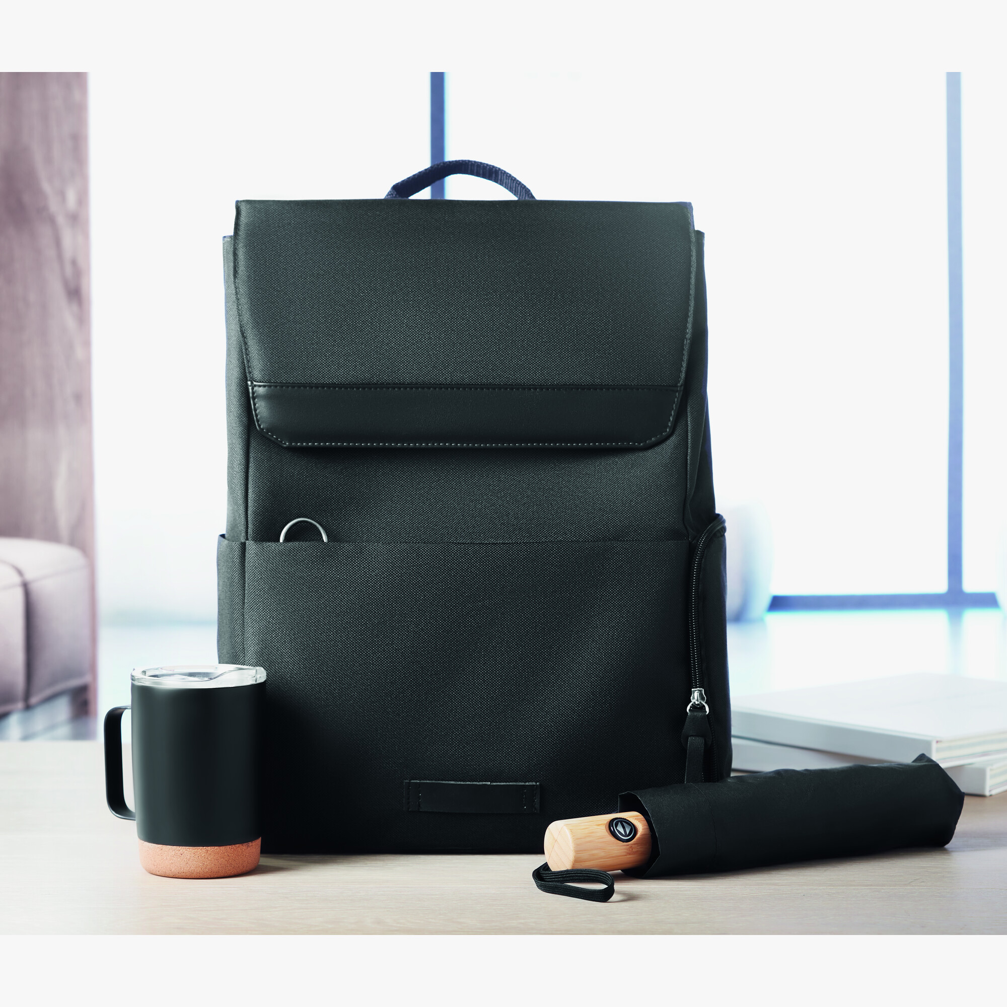 A mochila bicolor combina fecho magnético de segurança com uma estética moderna e cuidada. Personalize-a com o seu logótipo para elevar o valor percebido do seu merchandising técnico.